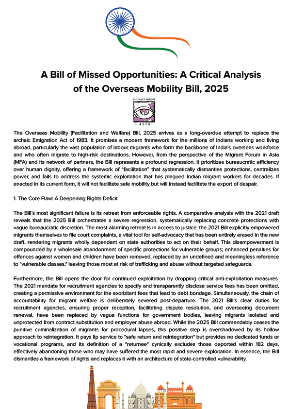 Home / India / MFA Statements / Statements / A Bill of Missed Opportunities: A Critical Analysis of the Overseas Mobility Bill, 2025